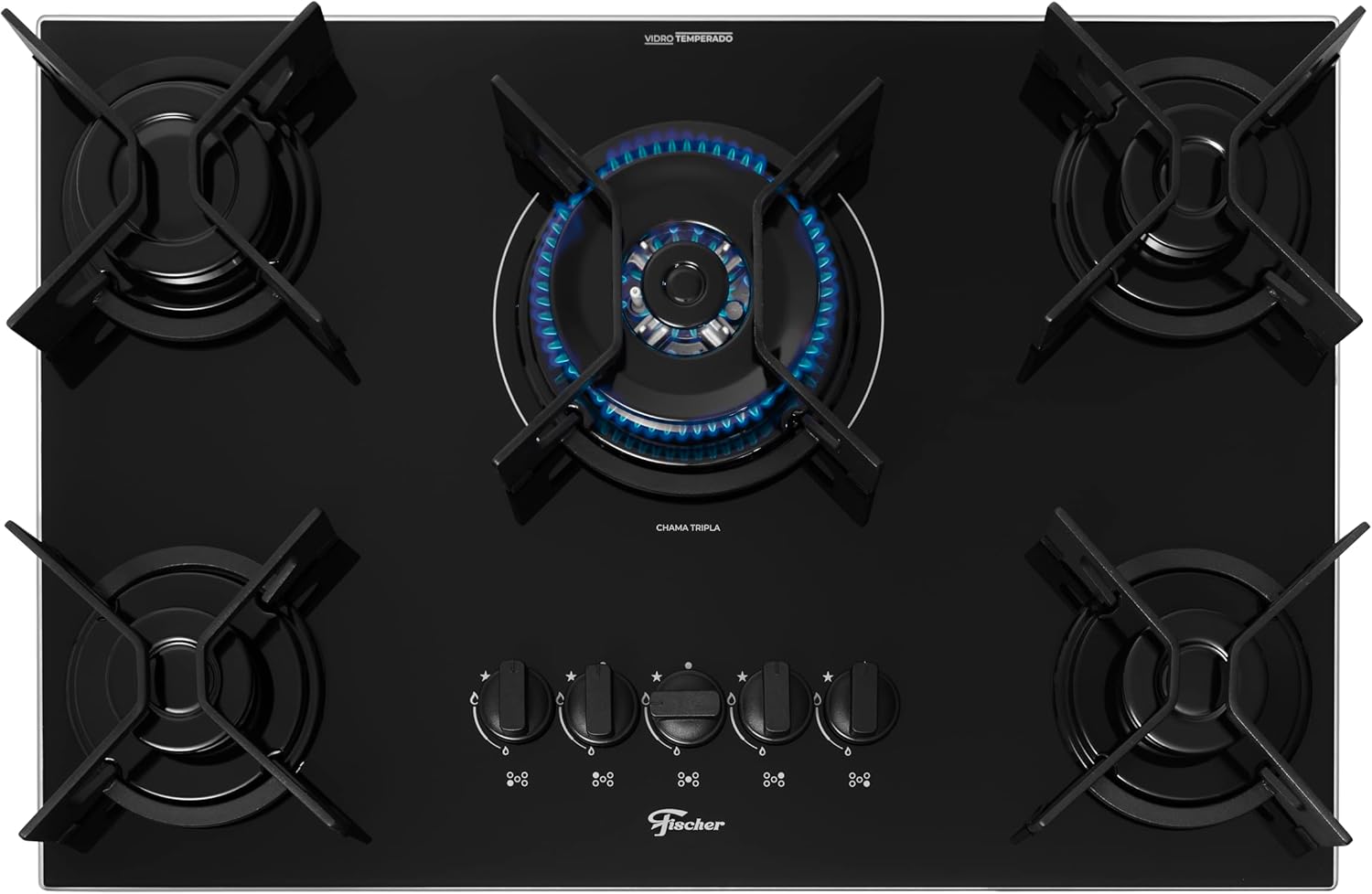2. Cooktop a Gás Fischer 5 Bocas Fit Line Tripla Chama Trempe Iron